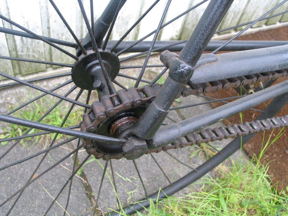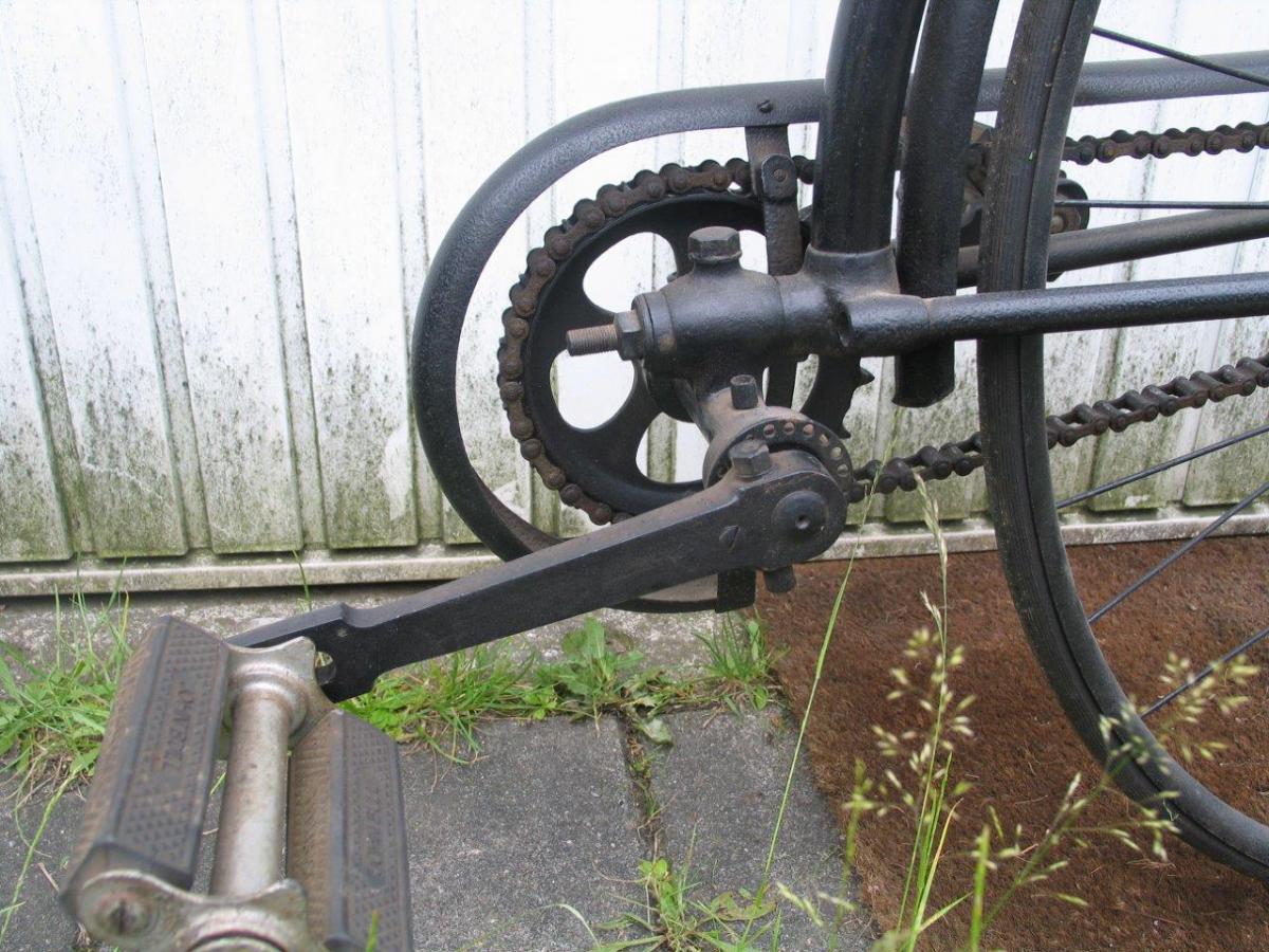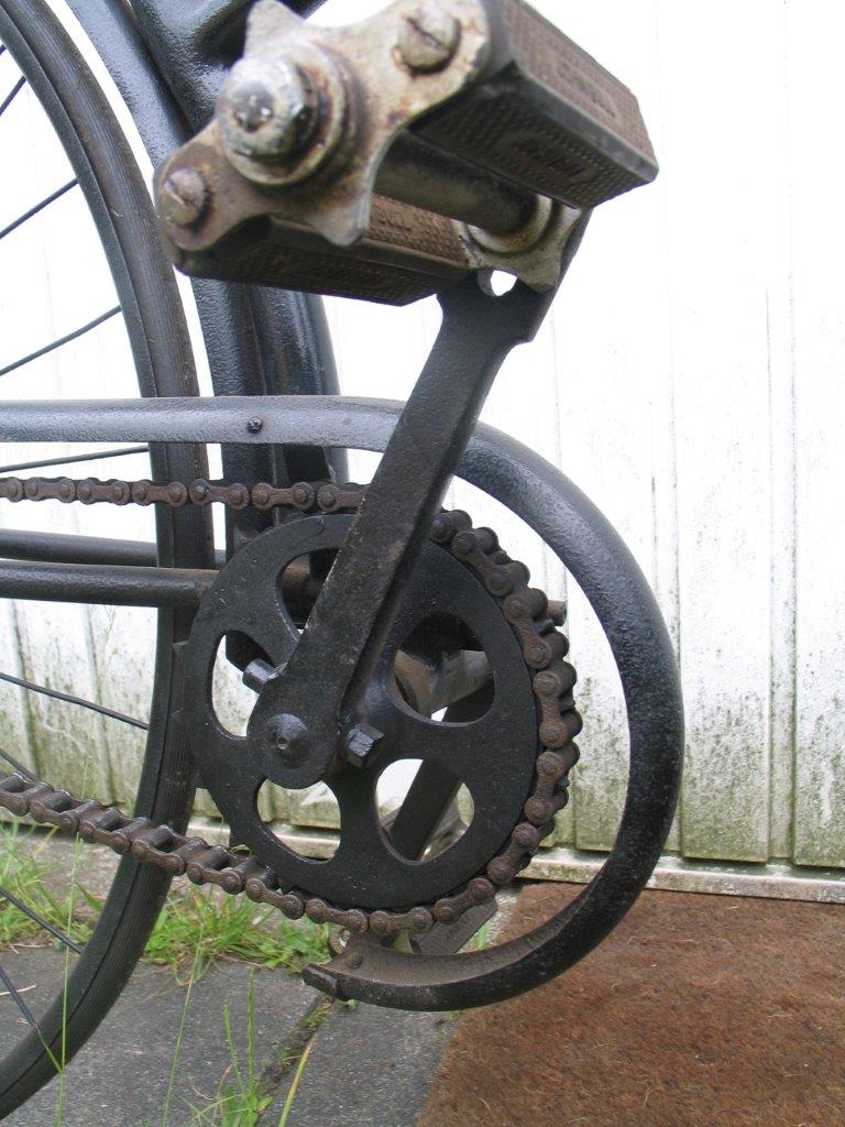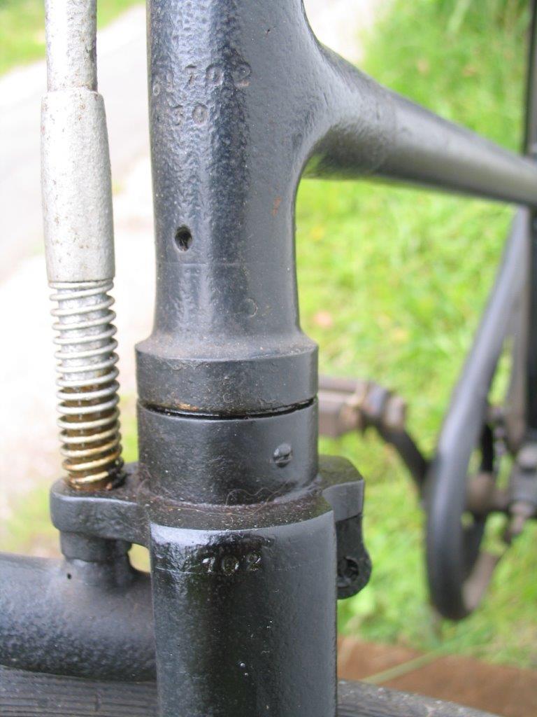 This example still has double rubber food pads and chain tensioning at the bracket, which makes it an 1889 model. Both details were to disappear in 1890. Serial number is 61702.